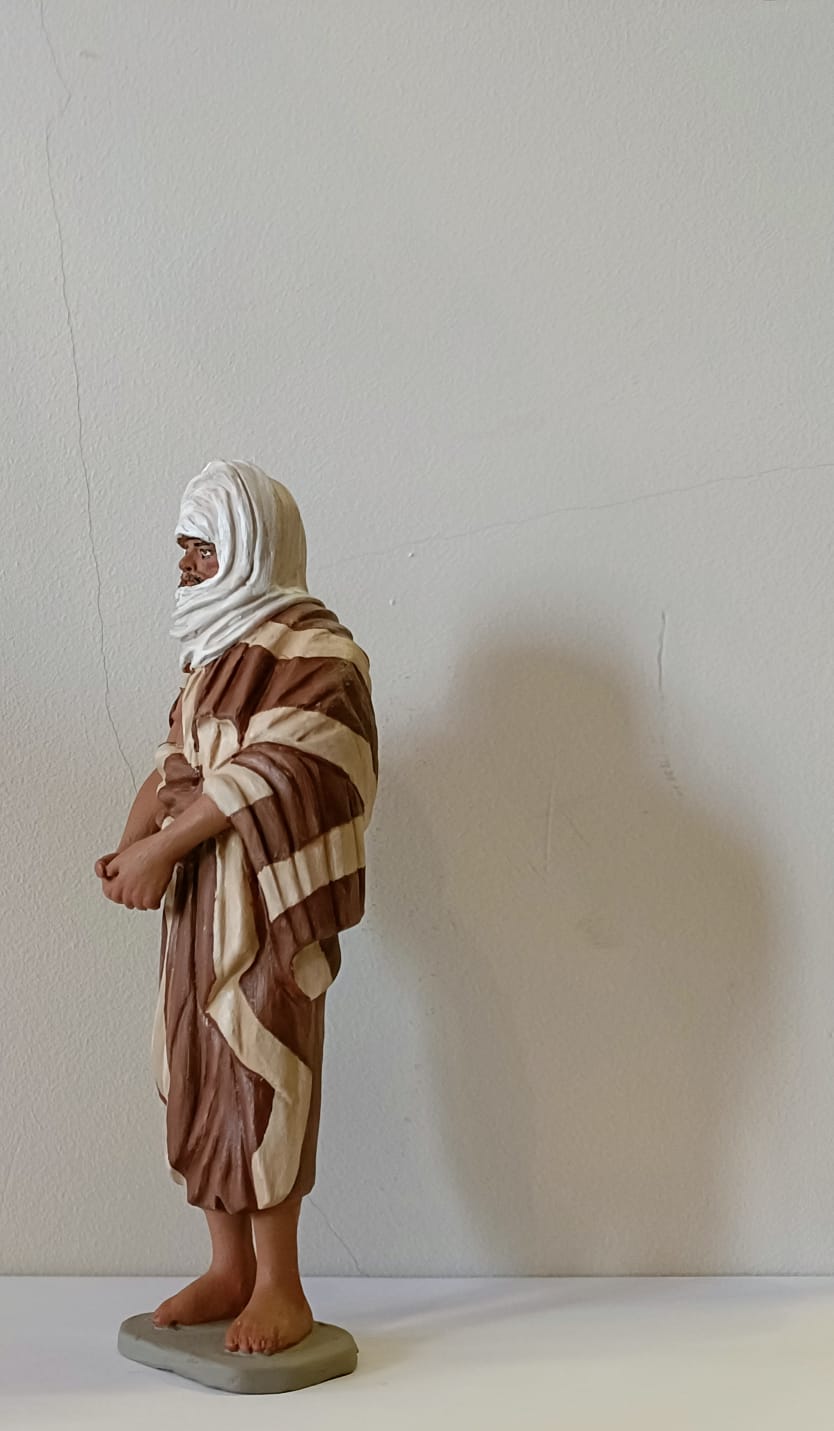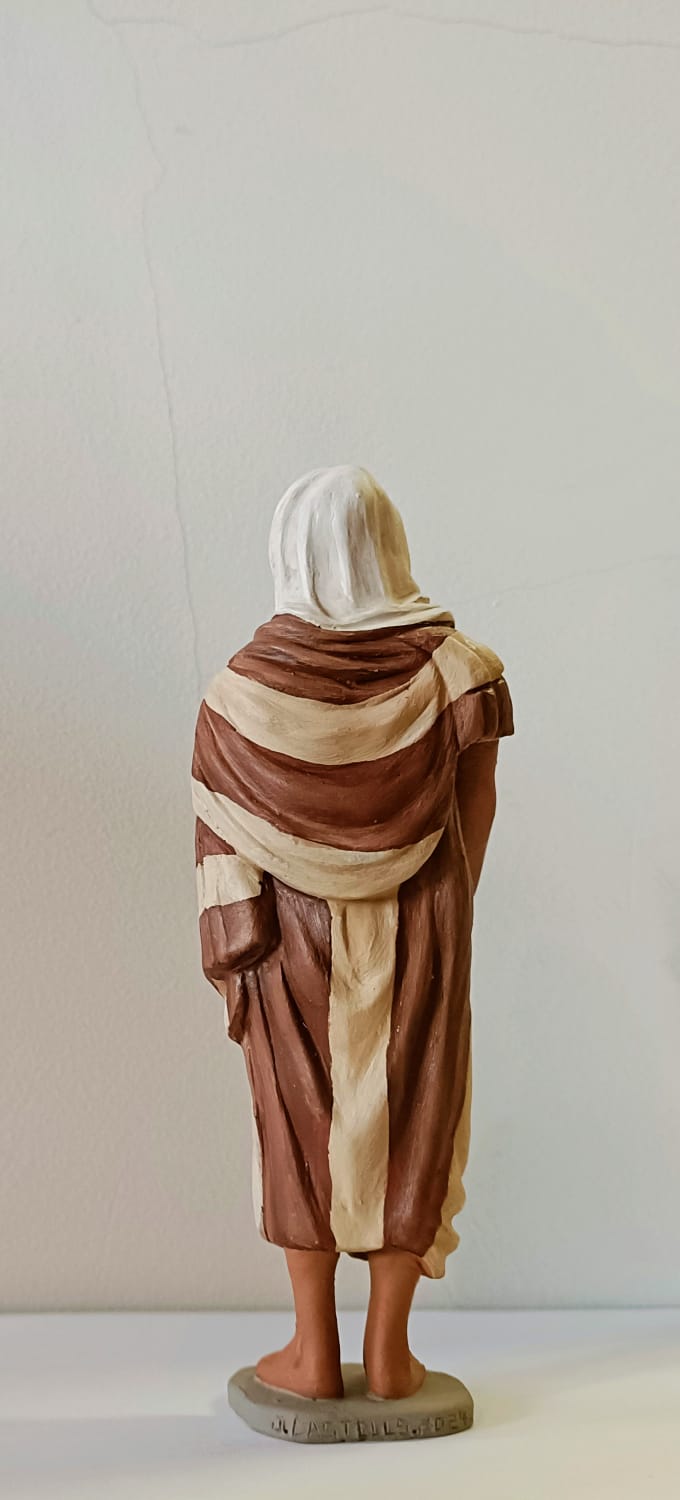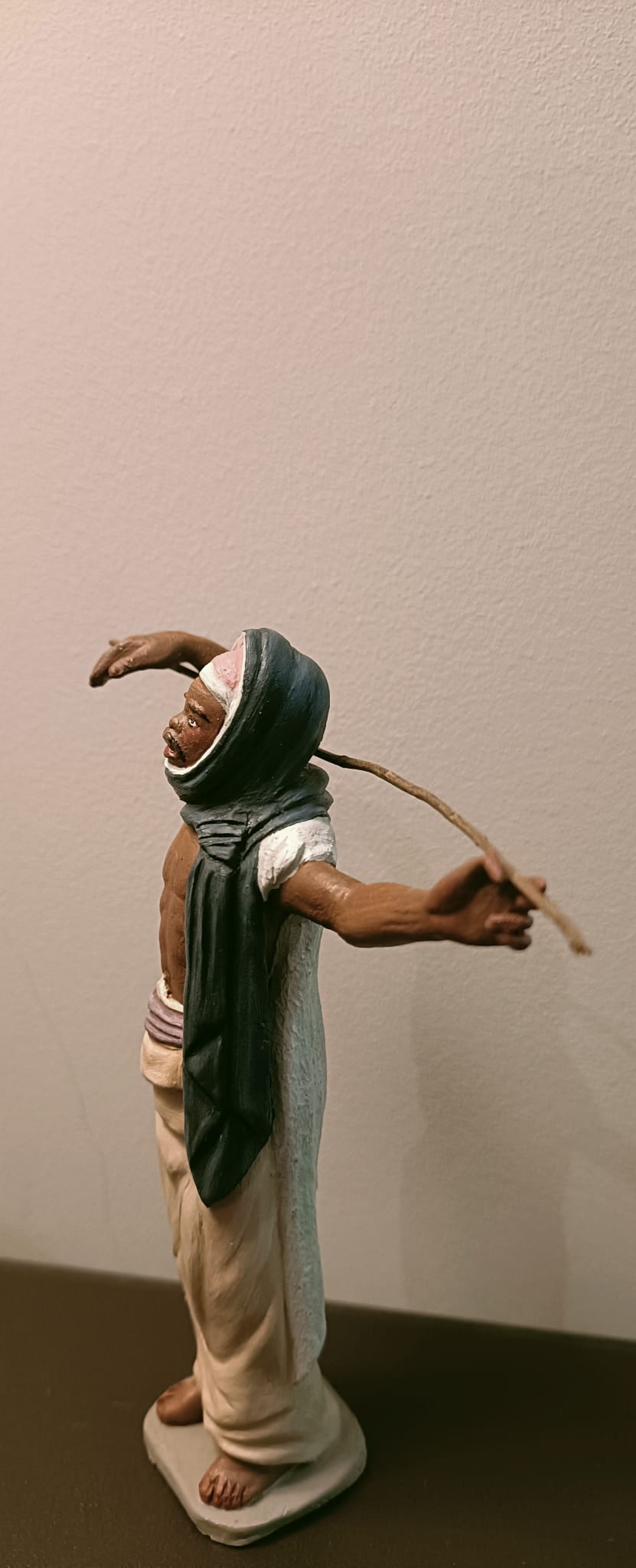 Según el propio Joan Castells, su trabajo en los últimos años consiste en figuras "modeladas". Este "manelic" (pastor árabe de inspiración fortuniana) es, en sus manos, un auténtico palillo. En mi opinión, es una pieza única en dos sentidos: primero, como representación del pastor, una figura arquetípica del belén ; y segundo, como una creación original que no aparece en el catálogo familiar de Castells (por lo menos yo no lo encuentro...).