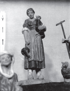 Hace nada entró en la colección una 'Dona dels Pollastres' (de 15/16cms.)muy especial muy despintada y a la vista ese barro sin color del XIX, vino de un anticuario de Gerona, me sonaba la imagen y no me resisti, después caí ¡Joan Toldrá! otro de esos autores 'perdidos', me impresionó tenerla en mano, figura muy fina de molde y sobre todo como reza los textos de hilo: