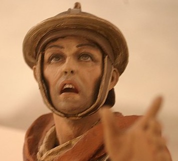 El zapatero de 16 de molde está acabado fatal, sea dicho con el máximo de los respetos... tiene poquísimo detalle en la ejecución y en la pintura, y la cara le brilla. Los colores son tristes. Estos defectos se van repitiendo en toda su producción actual de molde, que me parece de baja calidad. En el palillo es muchísimo mejor, pero no creo que sean obras excepcionales las que veo en las fotos. Los personajes (la mujer del camello, su conductor y el que lleva detrás el camello) se parecen demasiado entre ellos, y el de atrás está totalmente bizco. Me gustaría saber su tamaño para ver el nivel de detalle en el modelado, que en este caso solamente es medio... ¿se nota que no soy nada admirador de Mayo?