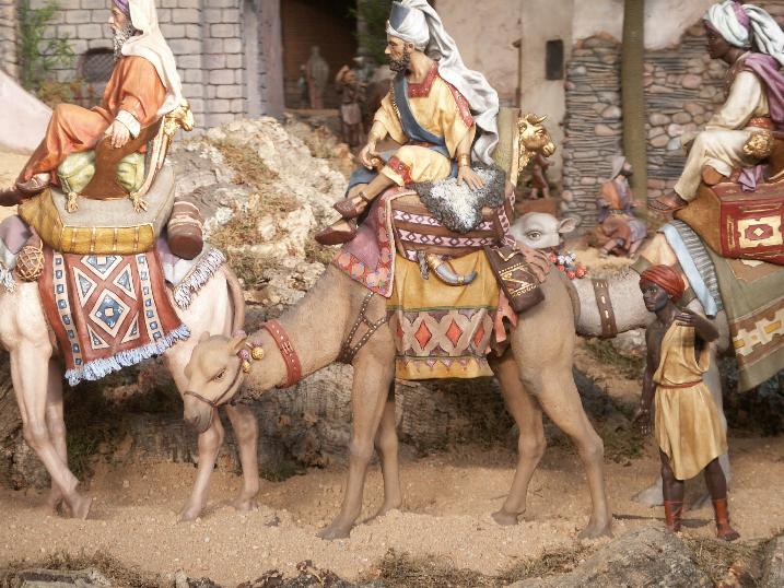 Las figuras de las fotos, no sé si serán obras excepcionales, en realidad, no sé que valoración les daría yo la verdad. Si que es cierto que me gustan, porque son los reyes magos, y llevan unos cuantos camellos y pajes en la caravana y no están mal acabados, tuve la oportunidad de ver ese belén