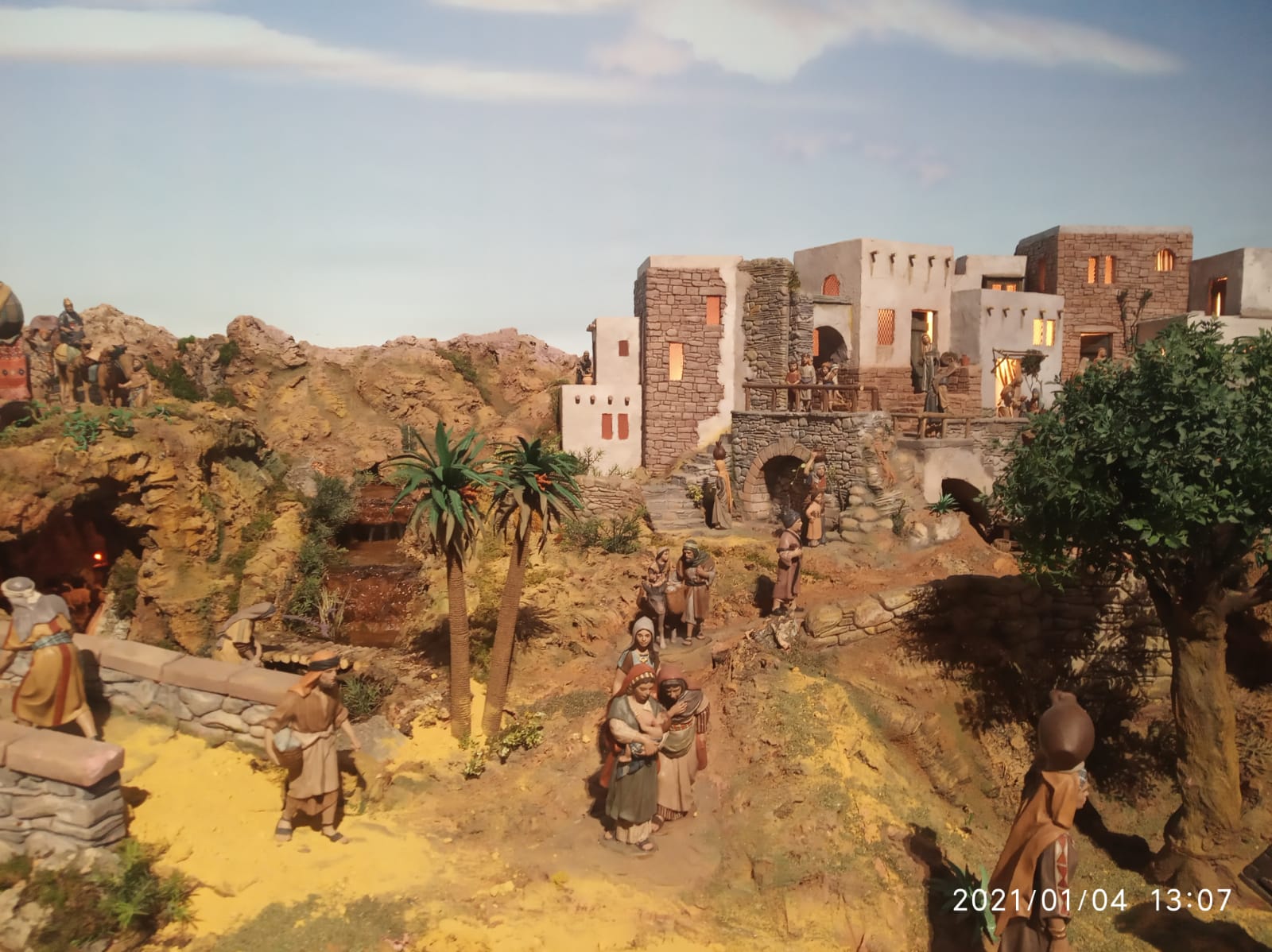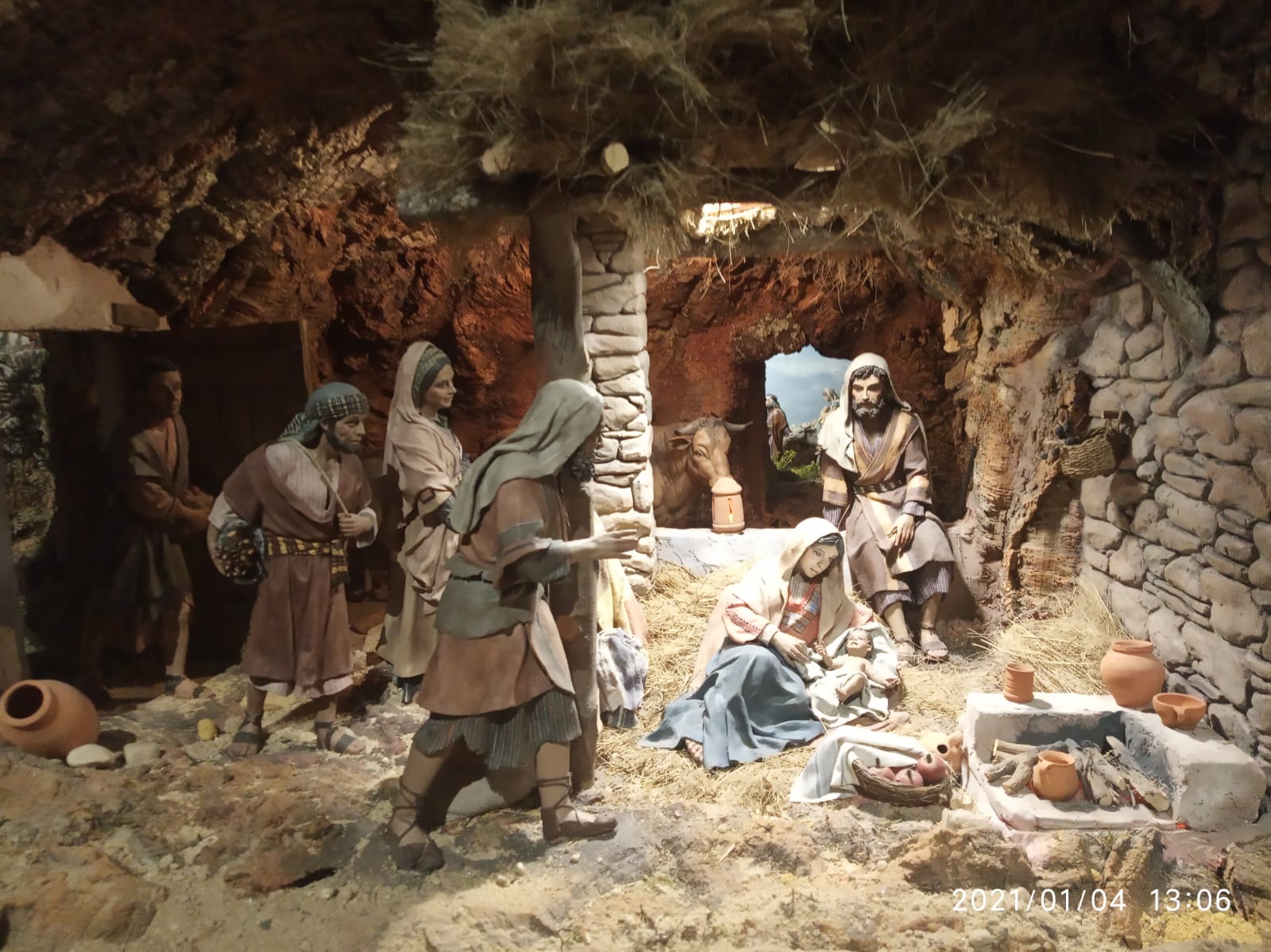 Con detalles interesantes como ésta imagen, nacimiento lógicamente en 1 plano y al fondo en la perspectiva de la casa-cueva la huida a Egipto solapada...