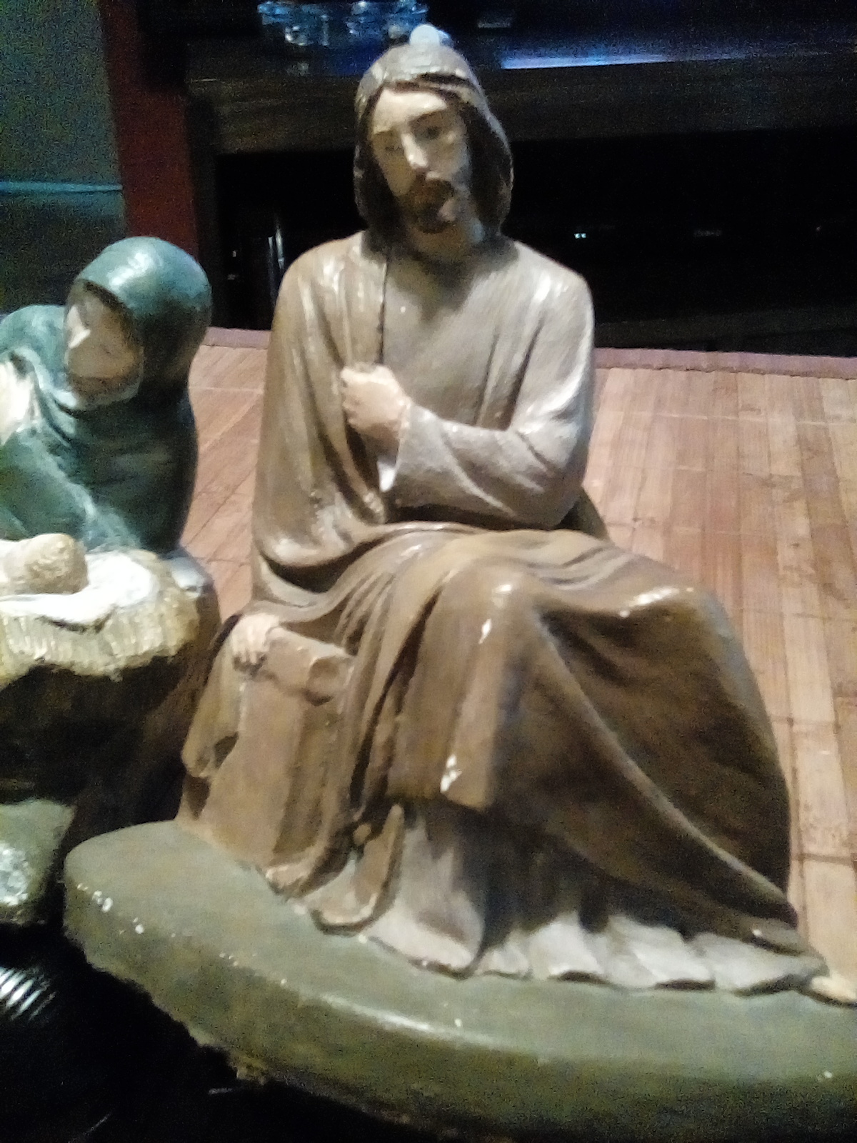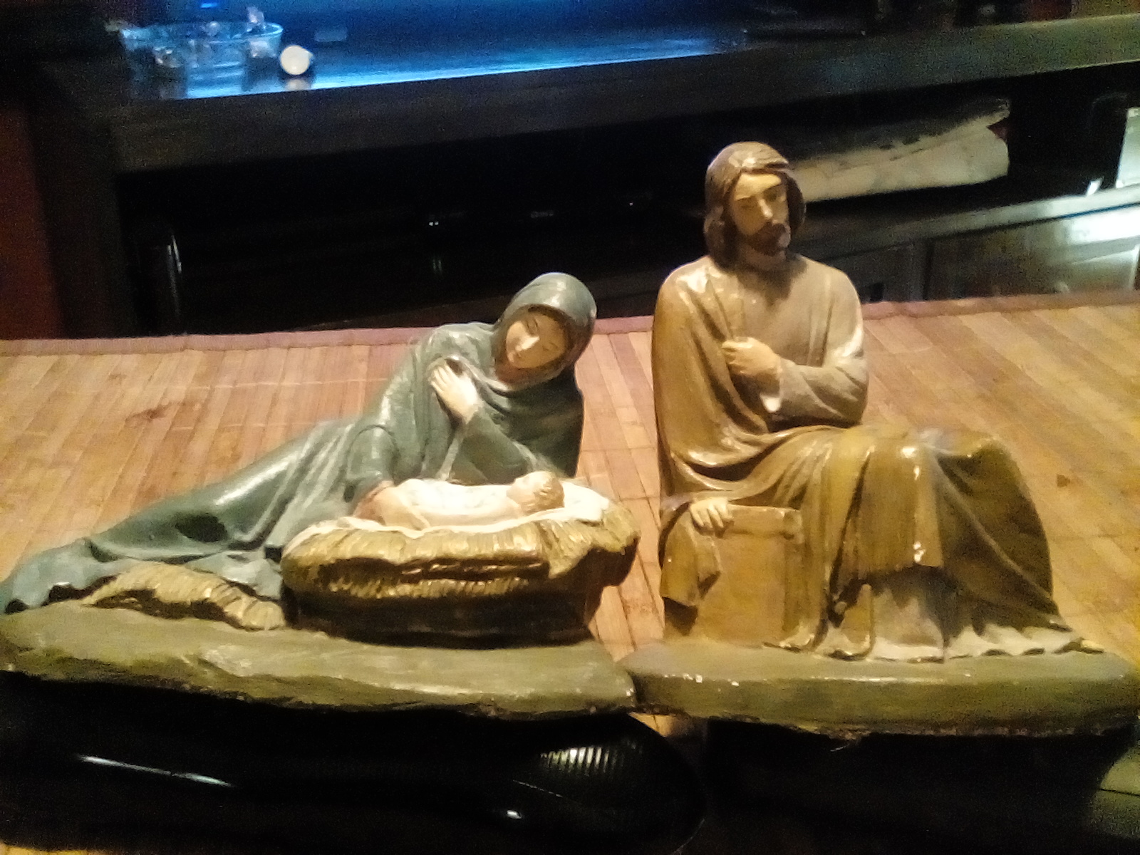 A falta de figuras de belén y recordando la Semana Santa, figuras de La Pasión de aproximadamente de 30cms., la primera oración en el huerto ,
