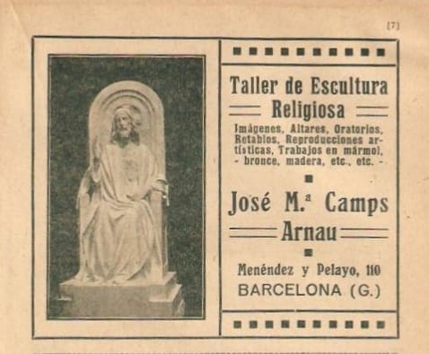 Aunque ya Hernán hizo la introducción otros breves datos de interés, Josep Maria Camps i Arnau (Sarrià, 29 de octubre de 1879 - Barcelona, 6 de febrero de 1968) escultor especializado en imaginería religiosa. Estudió en la Escuela de la Lonja, donde fue discípulo de Agapit Vallmitjana.