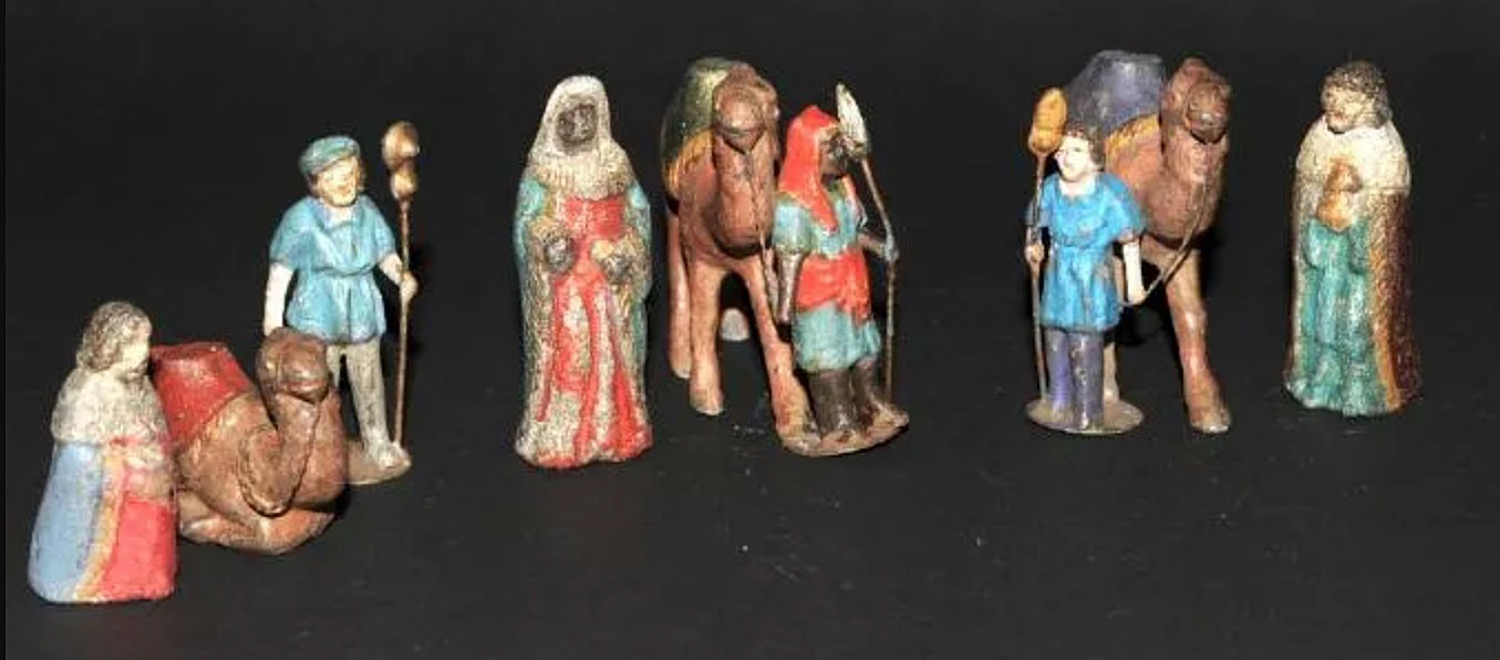 Por ejemplo si comparamos están pequeñas figuras de plomo (moldes) de Reyes y pajes con las primeras de barro de este hilo se ve que son de la misma mano, del mismo autor...