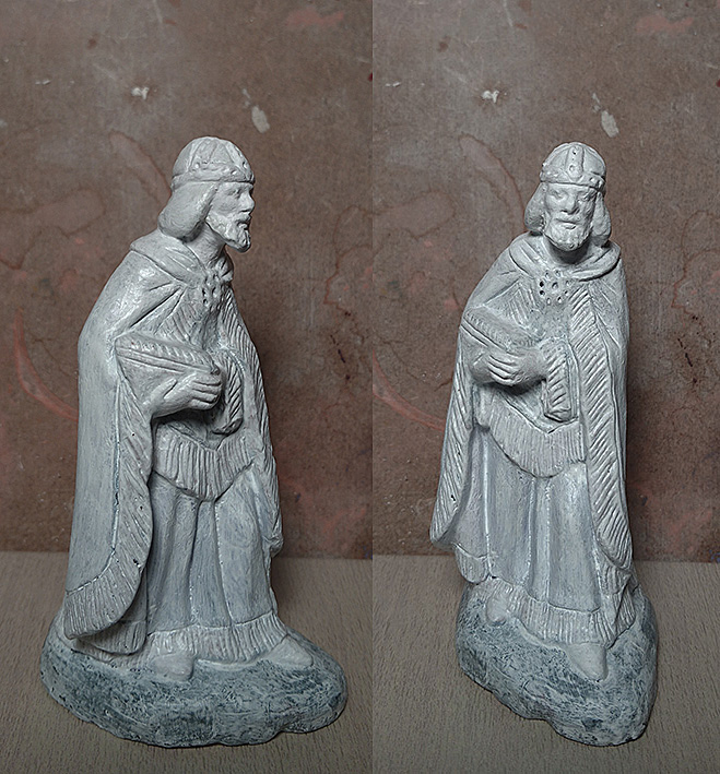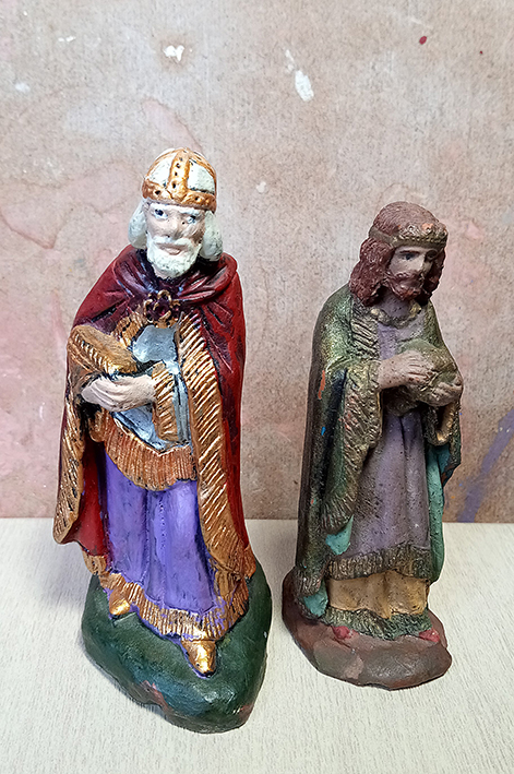 Comparativas de las figuras de Gaspar (izquierda: molde modificado y repintado como Melchor; derecha: molde del original)