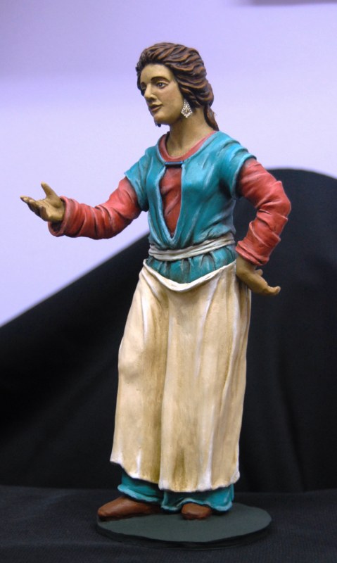 Primero podeis ver un "Pidiendo posada", en el que el posadero mirá a la Virgen María mientras San José le pide hospedaje.En 16 cm.