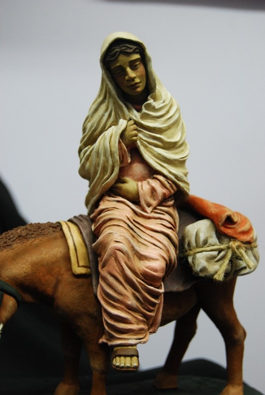 Primero podeis ver un "Pidiendo posada", en el que el posadero mirá a la Virgen María mientras San José le pide hospedaje.En 16 cm.