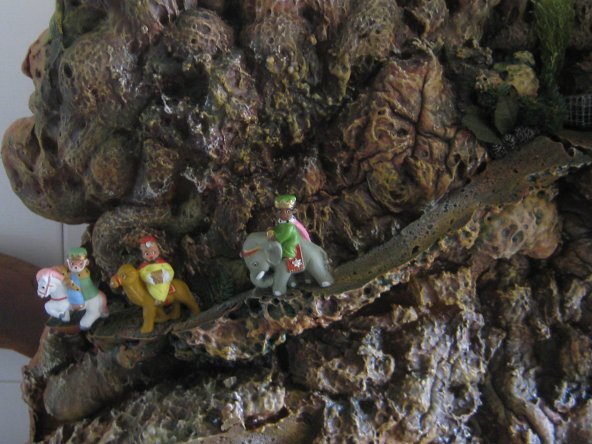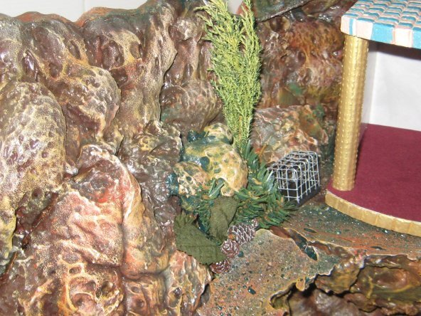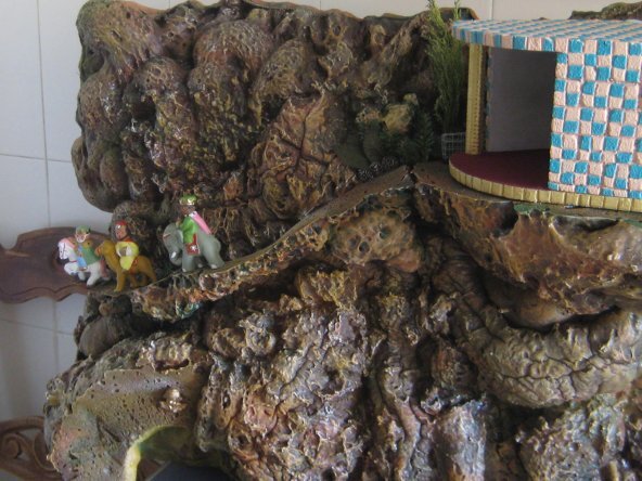 al dar la vuelta a la montaña, me quedo con judea, que es la parte que voy a trabajar ahora, lo primero que os pongo, es una fuente enorme y desproporcionada que tenían mis cabezones, había que subir la base, y hacer una roca que protegiera el mecanismo de la misma, ya que al segundo día de montaje la fuente se atascaba(con tanta virutilla) y era un calvario limpiar el tubo normalmente pasaba la navidad sin agua corriente, la roca de encima, es de quita y pon, además me permite poner la fuente mas adelantada, de forma que si tengo percance la pueda arreglar sin dificultad, espero vuestras opiniones, ya sabeis, le falta, tierrita, la cabrita, el pastor y el musgo.ejejejejejj