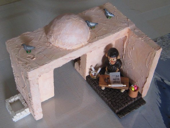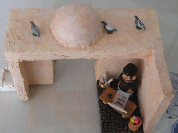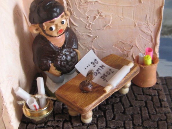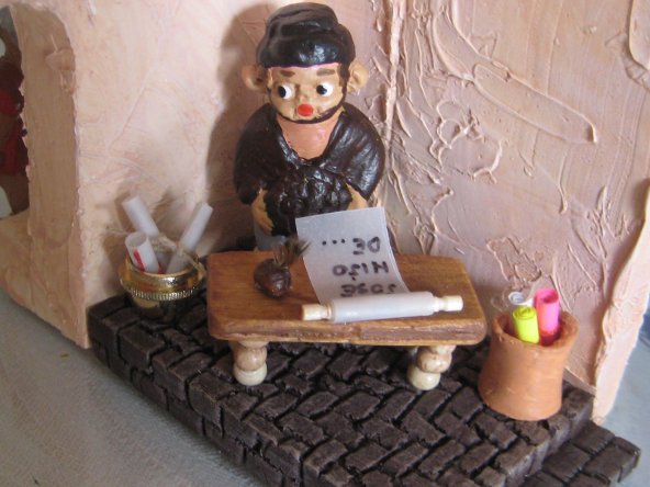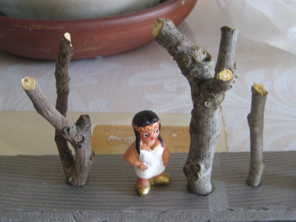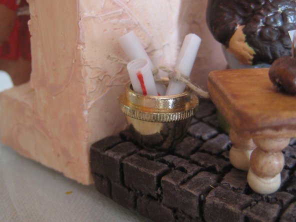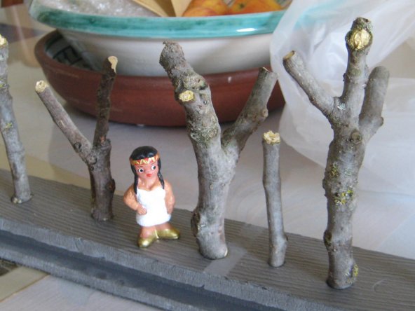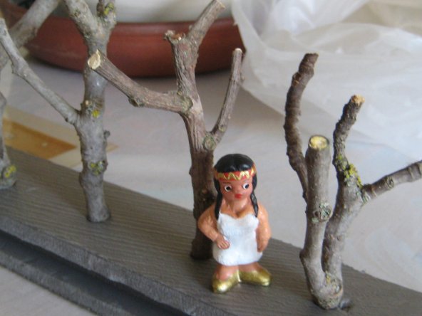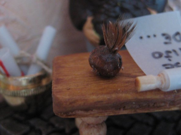 Lo de la pluma o algun adorno es una buena idea, lo importante es que se disimulara mas su origen naranjero, pero la del pastor quiza te venga mejor segu como tenga la posicion le puedes poner un pergamino, una pluma o una sombrilla..... por si hace mucho sol.
