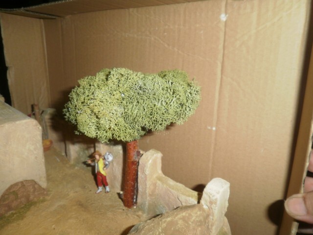 la morita todavia no ha salido de cuentas, el arbolito, es un tronquito de higuera, y la copa, musgo artificial, la base es de espuma de poliuretano, gracias por opinar.