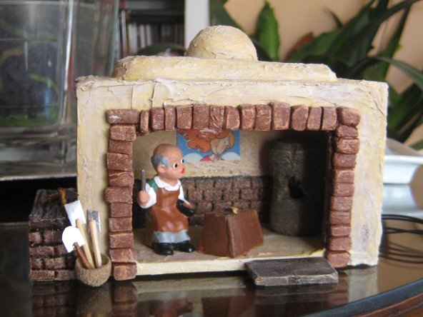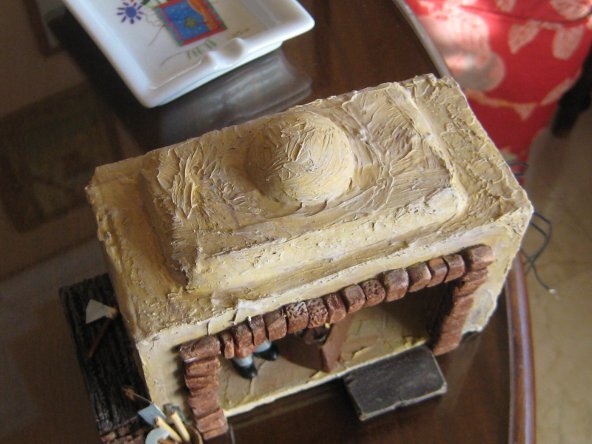 Como a mi maestro, no le gustaba la casa, despues de muchos intentos y sujerencias, quedó convertida en una herreria, ya tiene las luces, una central y otra dentro del horno. espero que os guste. ¿?¿?¿?