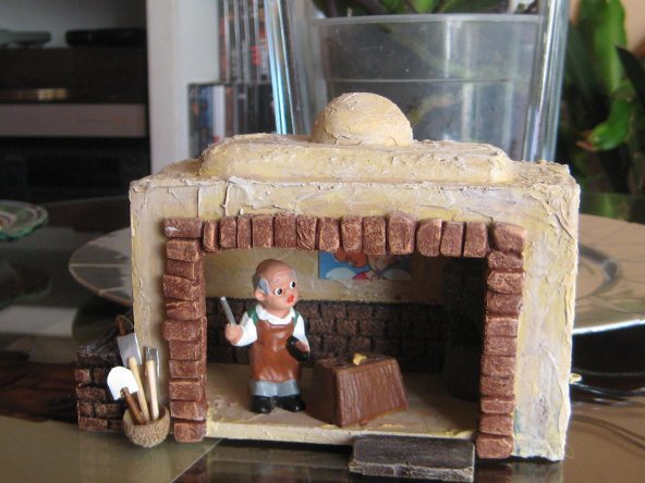 Monisimoooooooooooooooo!!!Que gracia el horno y las herramientas....tan chiquitito todooooo!!!!.El detalle del cuadro del angelito es una pasada y ahora a por la casita del "sueño de San José".Animo Pilita,que está todo de cine!!!