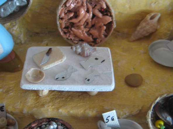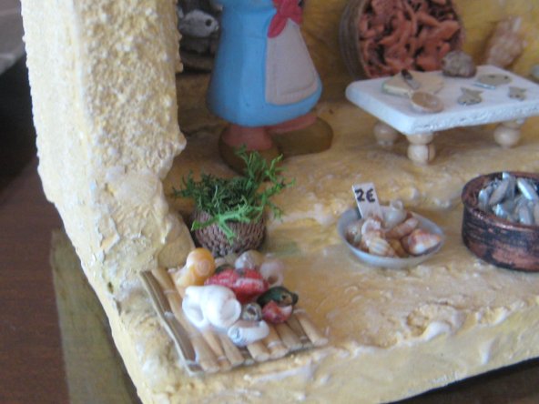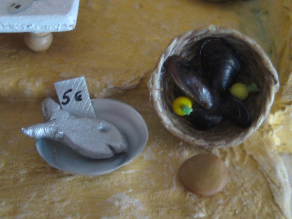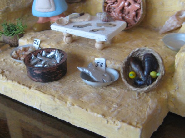 como veis esto va ya a marcha forzada, ya queda poco tiempo, os pongo la pescaderia, las fotos de la lenteja(para referencia del tamaño de mis cosas) las hice despues, para colgarlas en miniaturas, pero casi han salido mejor que las otras, esi que os las subo tooooooodas, espero que os guste.
