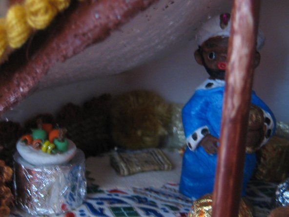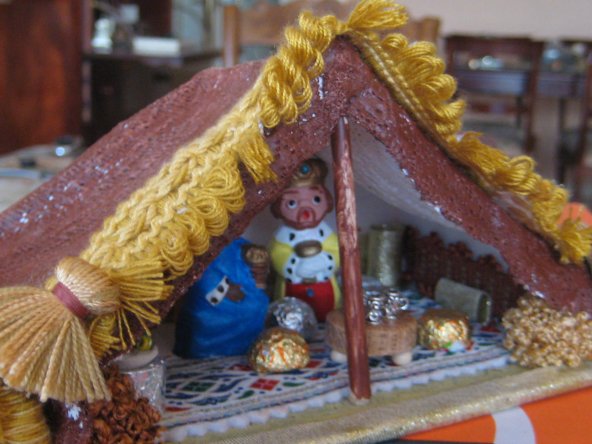 Hola Pilita, tu nacimiento es diferente y muy personal, lleno de pequeñísimos detalles que lo hacen distinguirse. Me gusta tu creatividad para inventar cosas. si me permites mi más humilde opinión, creo que deberías de pintar la jaima también por dentro y tienes razón: color saco, o arena del desierto. Y no te obsesiones por los colores, si no te gusta ninguno déjalo y prueba al día siguiente. Mi madre hizo hace dos años una jaima con tela de saco y la verdad es que se quedan chulas puestas.