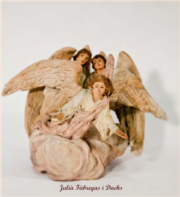 El dato es importante, pues también en la exposición que se hizo este año  en el Museo Etnológico de Barcelona: Figuras de Belén. Grandes Maestros Catalanes, de la que ya se habló en este foro http://foro.belenismo.net/forums/thread-view.asp?tid=1205&posts=217#M252738   http://foro.belenismo.net/forums/thread-view.asp?tid=18551   http://foro.belenismo.net/forums/thread-view.asp?tid=18773&mid=270693  aparecen unos ángeles atribuidos a este artista, policromados