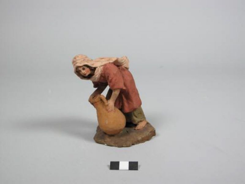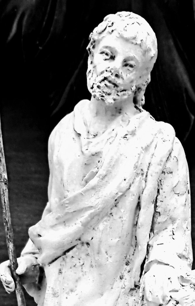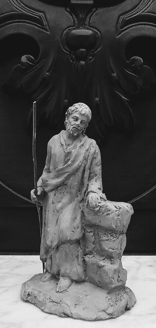 Un San José de 12/13cms. con una mirada casi sonriente dirigida al momento justo del Nacimiento, no es necesario ver la escena completa se refleja en su barro que se desprende del color y no así de la luz...