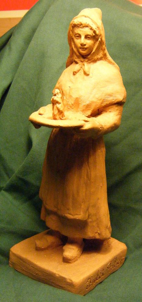 con fotos de una figura de barro en 'bruto' y muy bella con intención de una estética buscada, aunque alguna si policromó se acercó más a su esencia sin la misma.