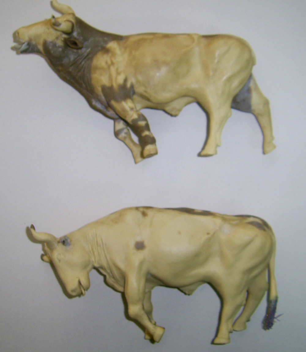 Hola carles buenos dias estoy interesado en estos bueyes. Habria posibilidad de pintarlos los dos de color marron y blanco como el primero que aparece en la imagen??? Que precio tienen. Un saludo