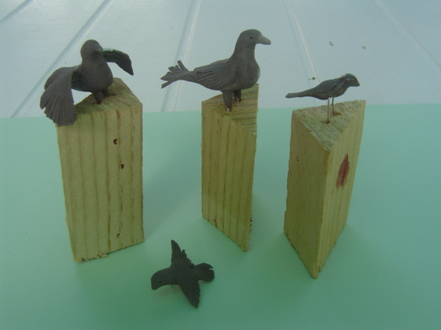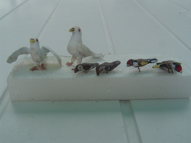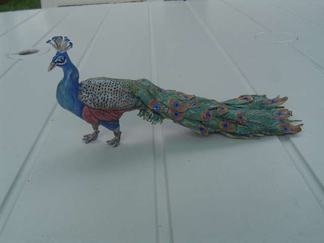 Están realizados con Super Sculpey Firm (cocidos como me dijo Santi en horno de casa a 110º durante unos 35 minutos), menos el pavo real, pues al ser mas grande y llevar armazón de alambre, he utilizado Milliput para el bruto de la figura, y después lo he terminado con Super Sculpey Firm y lo he cocido.