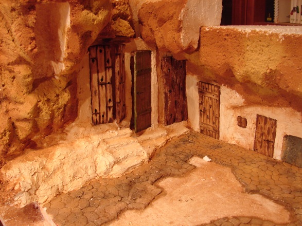 Se trata de imitar una serie de callejuelas en el interior de la cueva con sus respectivas viviendas subterraneas, consiguiendo una gran profundidad a base de arcos y espejos y figuras de distintos tamaños.