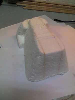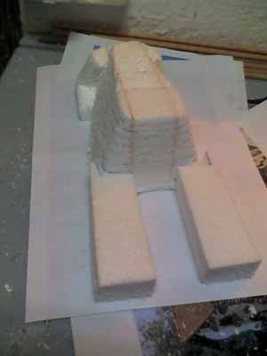 5. Por otro lado con un trozo de porex o como en mi caso varios pegados entre si (no me llegaba el grosor) preparamos la forma base de la esfinge