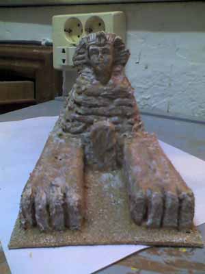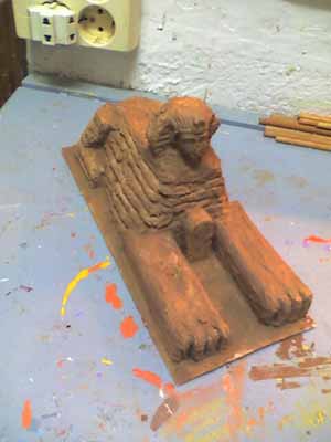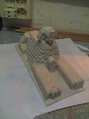 Pablo, yo compré una esfinge enterita en los chinos, he sacado el molde de la cabeza en plastilina, luego escayola y por último silicona para poder hacer todas las que se me antojen