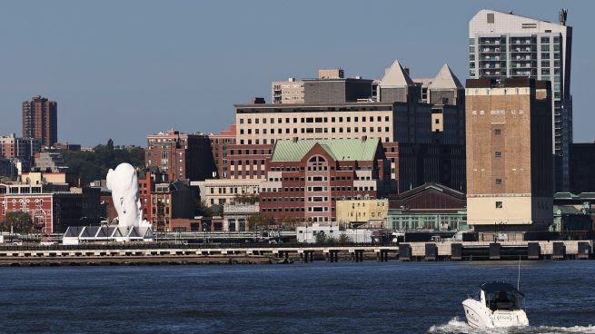 Capture+_2021-10-19-12-47-24(1).png (476KB - 110 descargas)..., pero en el de idea / imagen de ciudad tengo mis dudas, en la toma de la foto hay una cierta trampa, tal cual aparece pues si que da esa sensación de que parece que la figura esté pidiendo silencio a Manhattan, también el encuadre y la iluminación de la foto juegan su papel, que yo diría lo más importante en este caso para dar esa sensación de que la figura pide que la ciudad mantenga silencio y formen parte en la misma escena los dos cuerpos ciuta y escultura, el motivo no tengo ni idea. Pero la intención declarada de la artista es un tributo a el río Hudson y le da igual si se integra o no en la ciudad de NY..