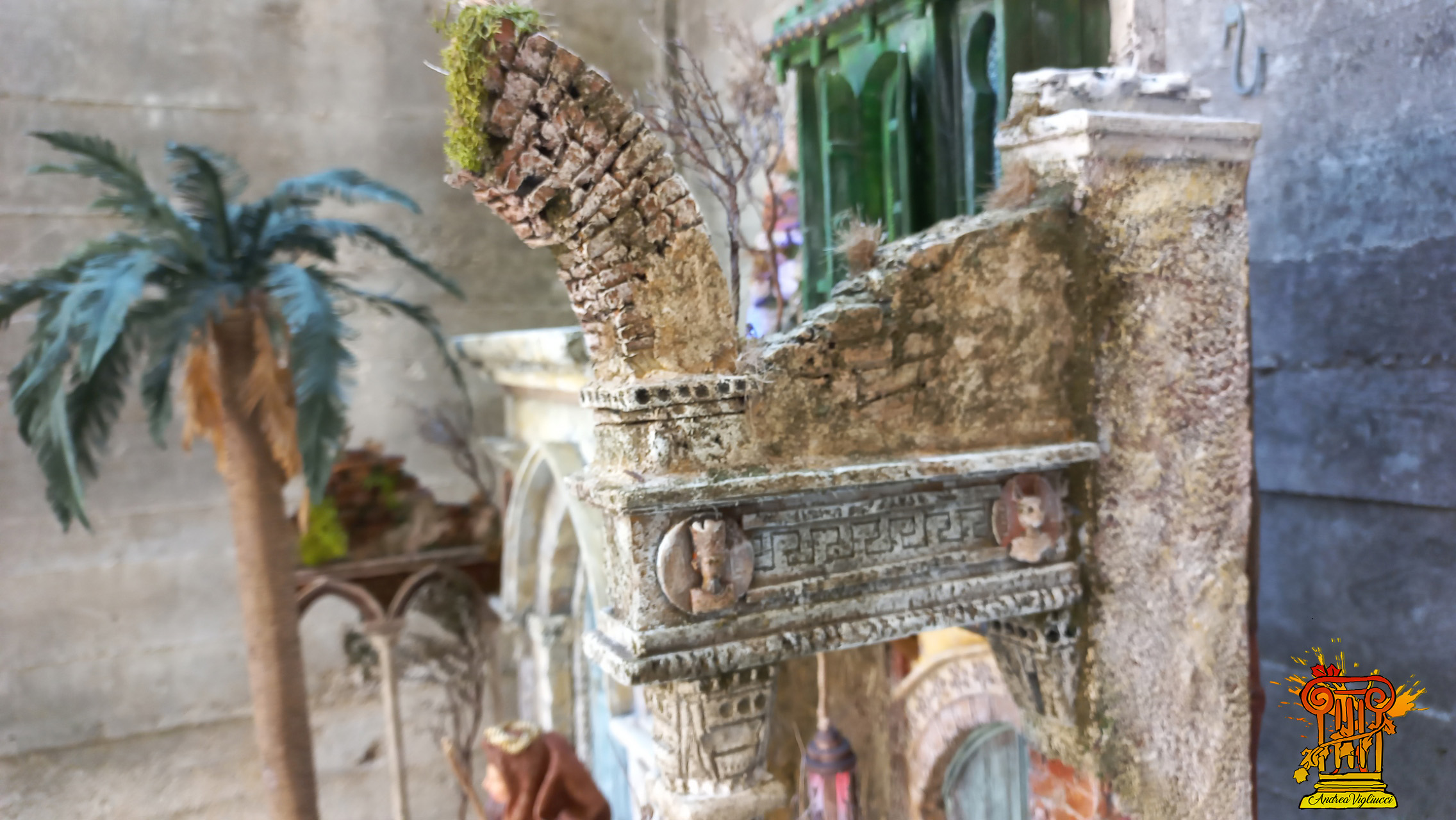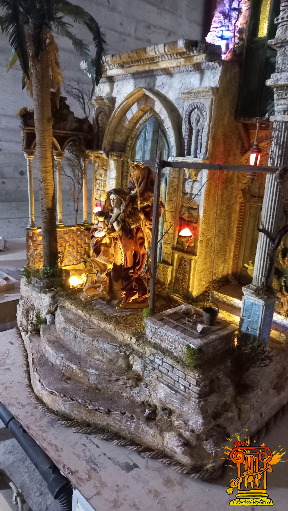 Presepe realizzato con polistirene e stucco dimensioni 70x52x95cm per statuine da 30/32 cm