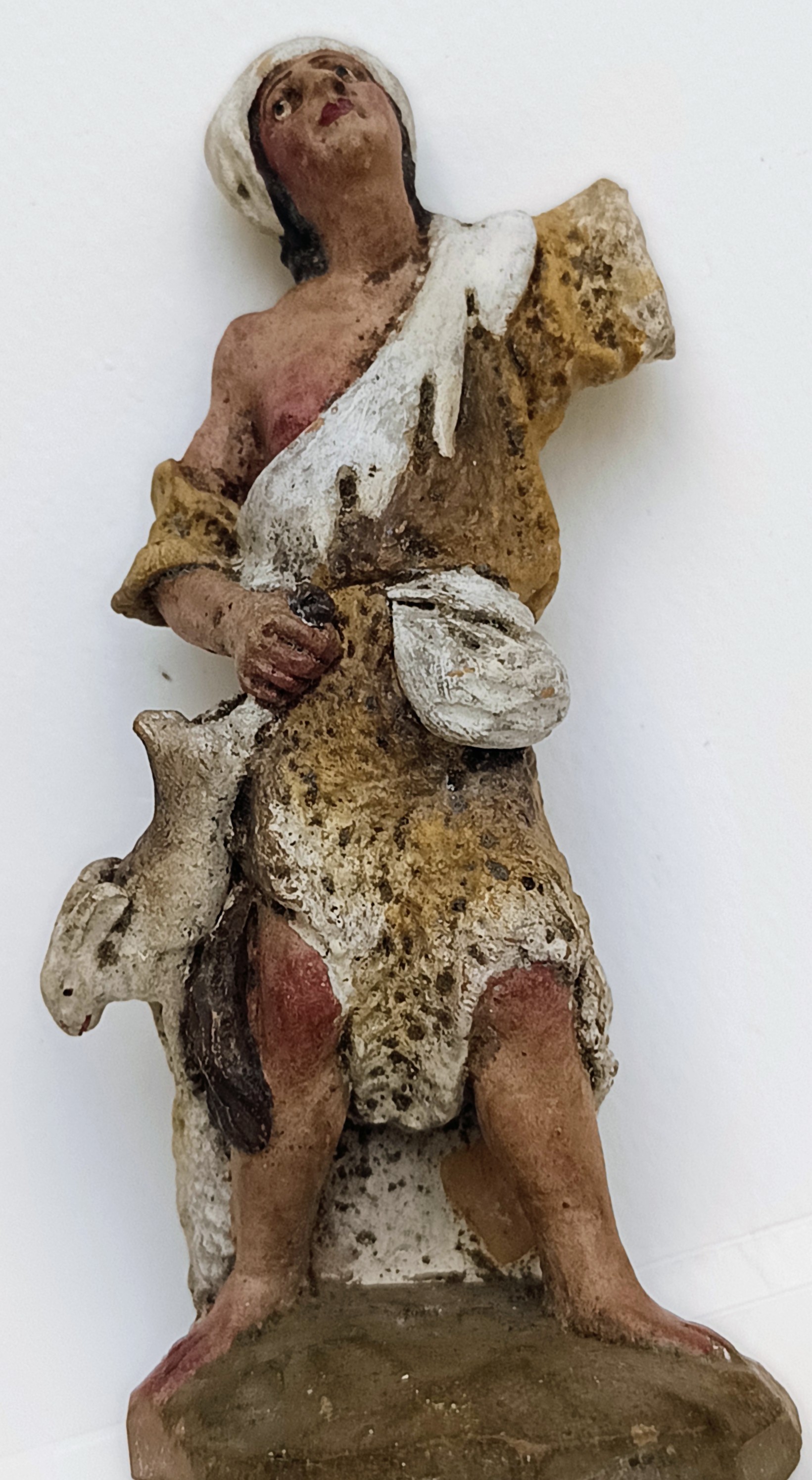 Det.peana-pastor joven(11-12cm.)_Muns.jpg (308KB - 10 descargas)Te entiendo: a primera vista podría dar esa impresión e incluso alguien podría situarla como proto-Castells. Sin embargo, en mi opinión no encaja, y por varios motivos. Para empezar, el color del barro —aunque no sea determinante— no es el característico, y sobre todo difiere en aspectos estéticos, de modelado y de policromía (pueden verse referencias comparativas en el hilo del Avi Castells ).