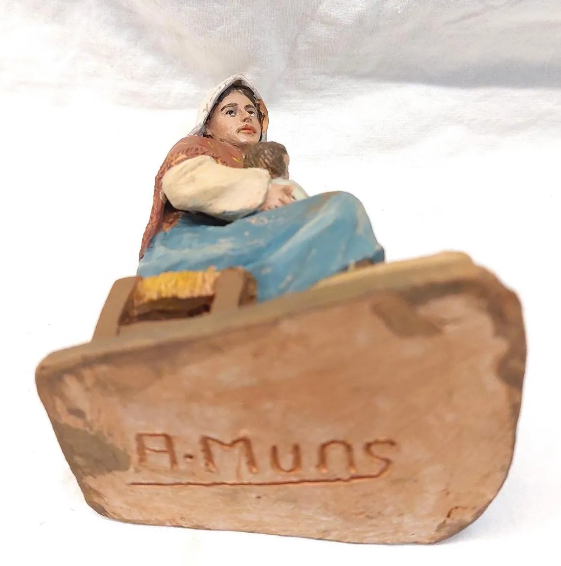 También M.Muns trabajo el pequeño formato como éstas que tengo en las vitrinas y que hay pocas en el hilo, son pastores de 8 cms. y sin firmar como era habitual. Aparte de las 'de museo' de mayor tamaño estas de 8 también son de cierta calidad y siempre quedan muy bien en cualquier belén combinandolas por ejemplo con Castells.
