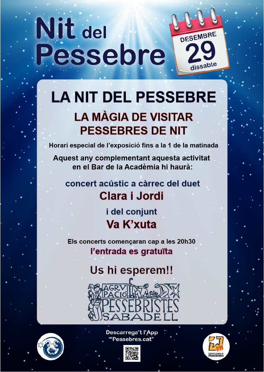 Más información: http://pessebressabadell.cat/2018/12/23/la-nit-del-pessebre/