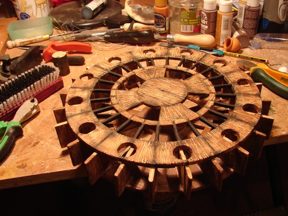 Para Pastorcillo de Almansa: Te diré y antes ya explique como pegúe el canal, respecto a la pasta es simplemente aguaplast, el mecanismo es un motor a 4.5 r.p.m. unido por un eje de acero inox. al centro de la noria y la pintura una pintura normal mate de manualidades, ah y un poco de imaginación de deben aportar tu.