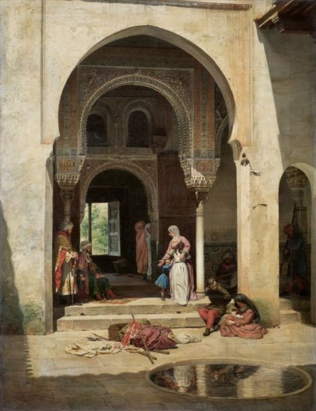 Una pequeña absorción , las casas de Oriente casi no tienen ladrillos, en este cuadro ,una excepción ,hay un arco hecho de ladrillo