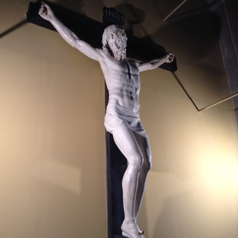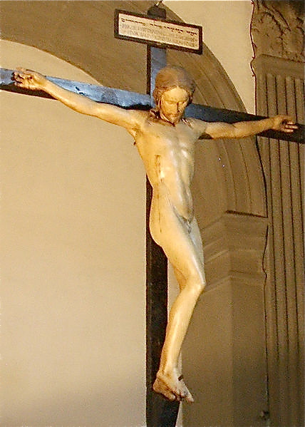 es bién ese crucifijo de Benvenuto Cellini , totalmente desnudo pero insigne obra religiosa y artistica , que sin ningún desconcierto veneraría ofreciendole el incienso igualmente con todo corazon y humildad .