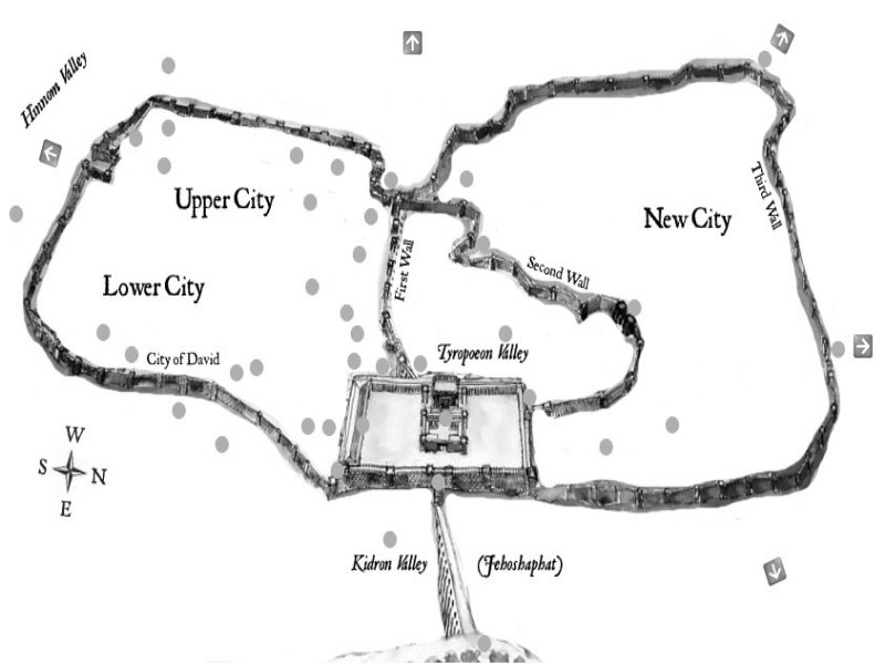 Por lo tanto, en la época de Jesús, hacia el año 30, no existía el Muro III, aunque ya abundaban las casas en algunas zonas extramuros de la Muralla II.