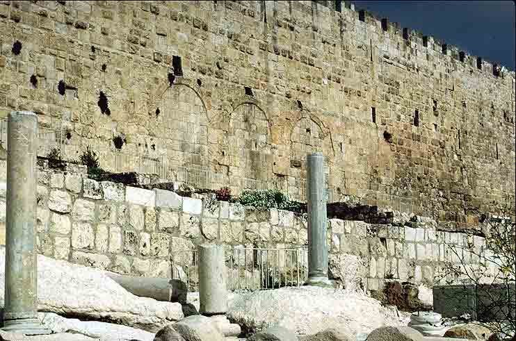 Desde esta esquina es de donde arrancaba la antigua muralla en la época de Jesús; que no hay que confundirla con la actual muralla de la “ciudad vieja”, que arranca, como ya hemos mencionado, de la torre construida por los templarios a la altura de la puerta doble, y fue realizado por los otomanos hacia el año 1500 d.C.