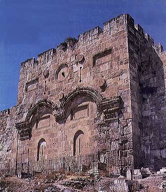 Hoy en dicho lugar se encuentra la Puerta Dorada o Puerta de la Misericordia (fig. 25). Que data de la época bizantina. Puerta que como ya sabemos se encuentra tapiada, y delante hay colocado un cementerio, para que por ella no pueda pasar “El Mesías” judío.