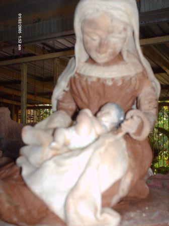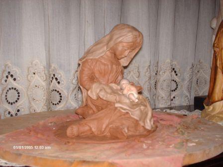hola a todos los amigos foreros, en el post de las ovejas coloque unas fotos del inicio de la virgen maria que empece a modelar, a continuacion les muestro las firgen casi terminada, faltando los detalles de alisarle algunas partes, el niño se lo coloque para indicar donde va a ir, no lo hice yo, espero sus comentarios para que me ayuden a mejorar el primer trabajo de modelado de una figura que no rd una oveja.