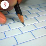 Un inciso, todo depende de la profundidad que se le quiera dar a las juntas, yo para mayor profundidad primero señalo con el cuter y lugo remato con el boli antes mencionado. Otra opción es con el propio cutter usando la parte que no corta con ella lo hundo y luego doblo el cutter hacia un lado y hacia otro, con esto se consigue dar bordes redondeados a los ladrillos.