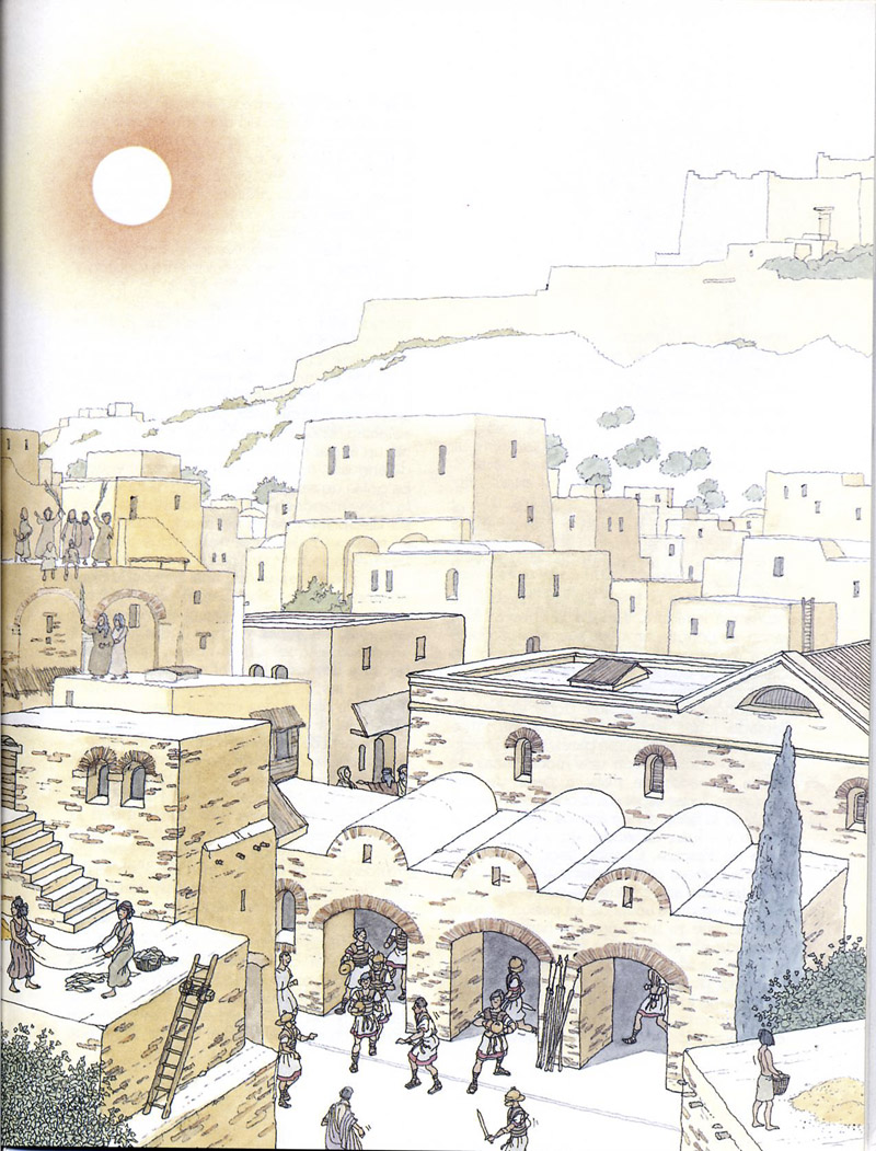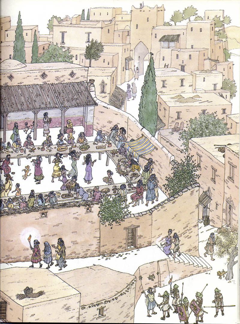 Las laminas son muy bonitas, eso si son árabes. Hay una en concreto, que a mí particularmente me sirve para tomar el color de los edificios que están lejanos. Me refiero a la que con una barca están cruzando un dromedario. Pues bien,  si os fijáis en las torres tienen una coloración rosa-violeta en conjunto y no se aprecian los detalles de las torres, solo el contorno.