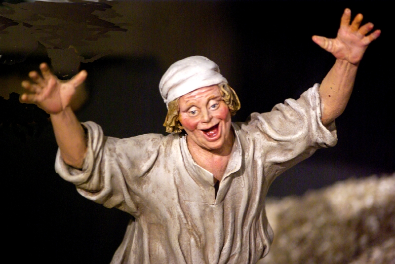 si Jesus , la figura del Ravi tiene algo del tontito del pueblo , ya que el ravi se va repitiendo fuertemente y a si mismo , a lo largo del camino y delante del belén mismo " eso , eso , no es posible todo lo que estoy viendo y oyendo esta noche ..que felicidad que alegria " ( " aco es pas possible , aco es pas posible ...que bonhur ! " )