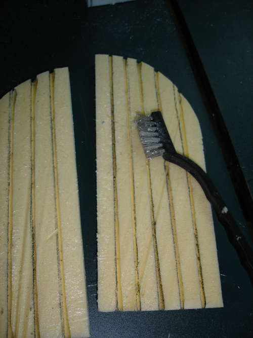 -Con un cepillito de cerdas metalicas, lo pasamos para darle la textura .