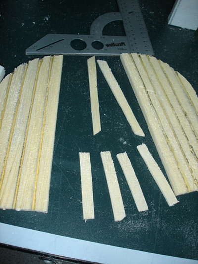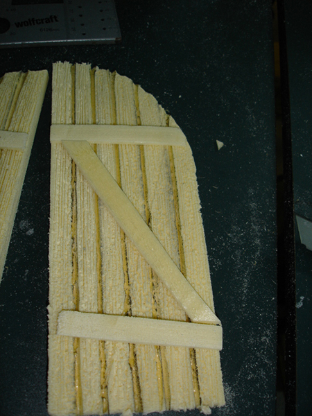 -Cortamos unas tiras finas para hacer los traversaños, a medida de nuestra puerta, las cepillamos tambien y las pegamos de forma que deseamos nuestra puerta.