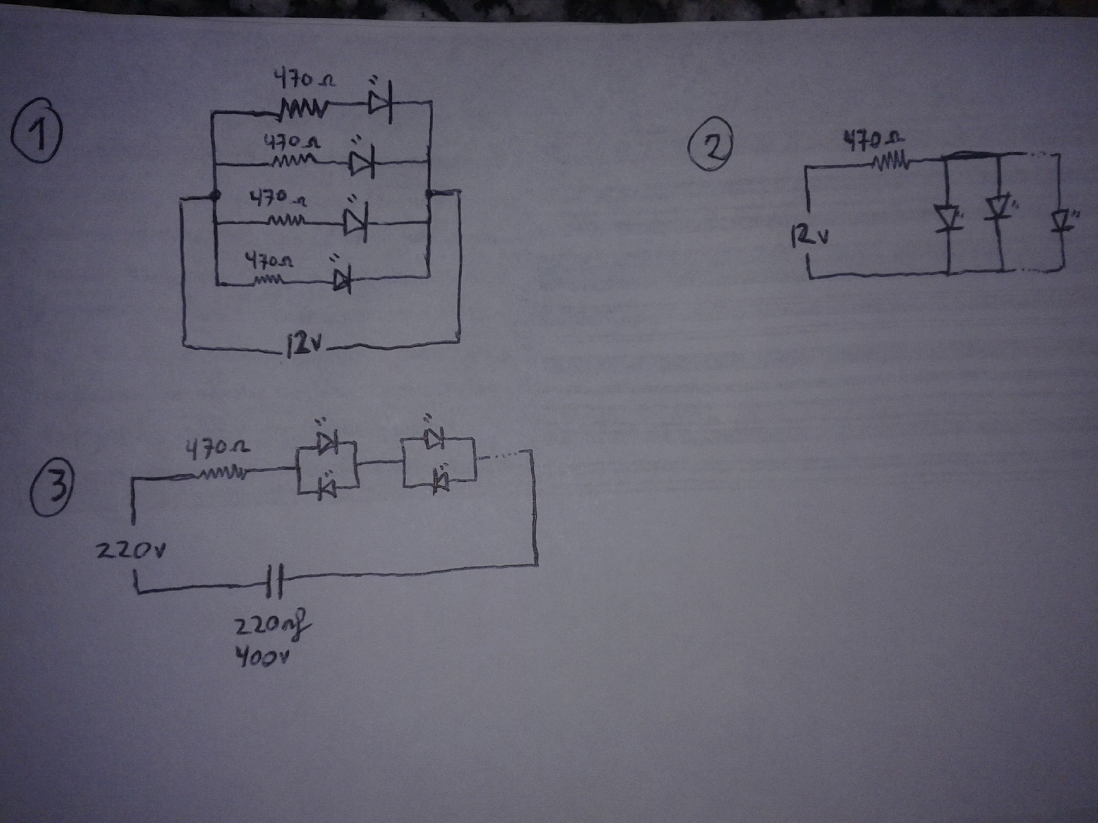 Personalmente me parece una incongruencia usar este tipo de iluminación, el LED, que solo requiere de 2 a 3,5 voltios en un circuito de 220 voltios.