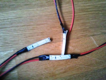 Hurty no ves las soldaduras porque al hacer la foto esta por la parte de abajo. en la foto que ha puesto David esta bien explicado y asi es como yo lo hago. añadire que los puntos de soldadura de la tira de leds en el centro llevan un agujerito tapado si se descubre de la parteprotectora puedes meter el cable a soldar una vez estañado las puntas y darle calor con el soldador se queda unido, como ves las soldaduras en electronica.