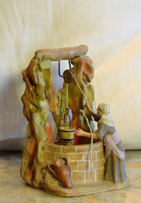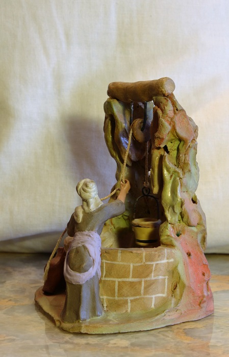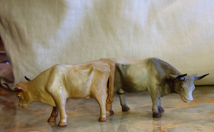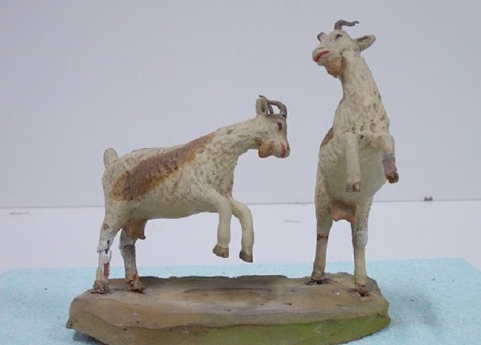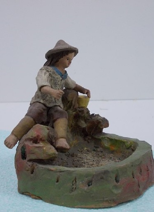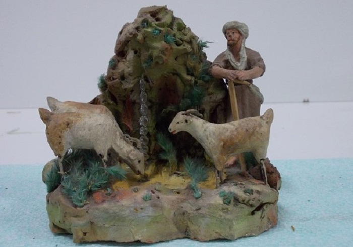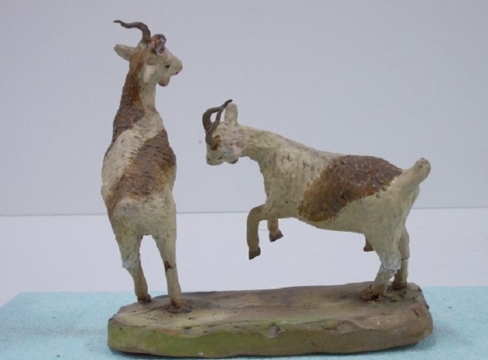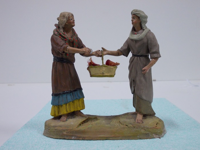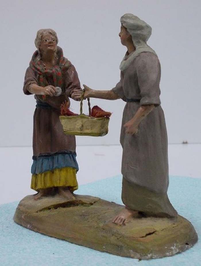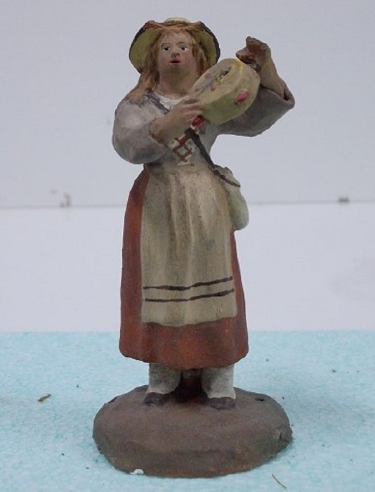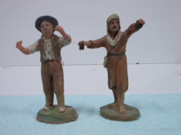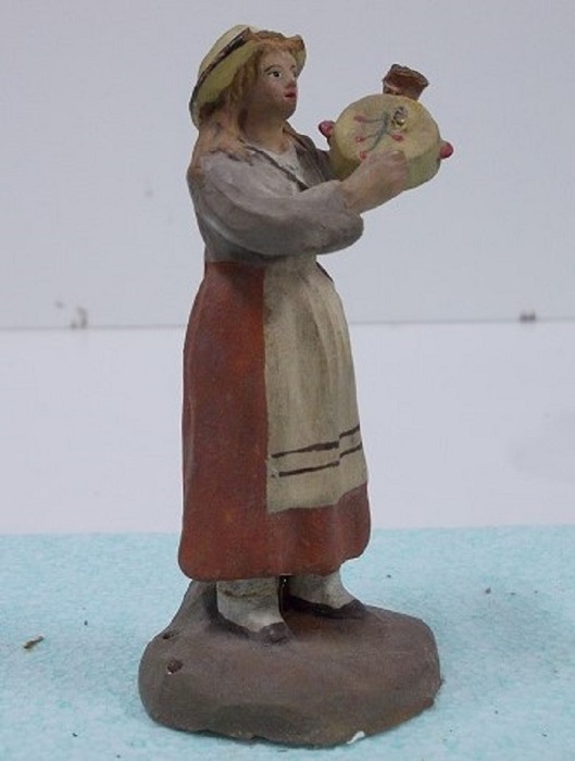 Son figuras de terracota, hechas en molde, pintadas a mano después de cocidas y encoladas en una peana.
