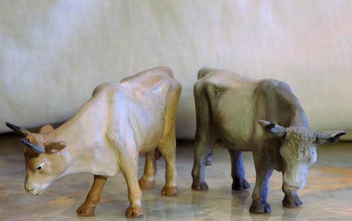 Hay representadas escenas domésticas y de la vida en el campo, y también animales domésticos y de trabajo.
