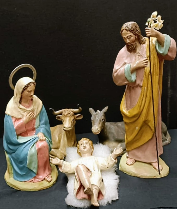 Subo al hilo las que he ido coleccionando durante estos años, como éste misterio de 19/20cms., el Niño Jesús parece mayor no sé si es por destacarlo (si era usual de la época, como también los animales son proporcionalmente mas pequeños) o es de un Nacimiento mayor...