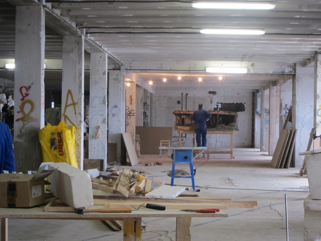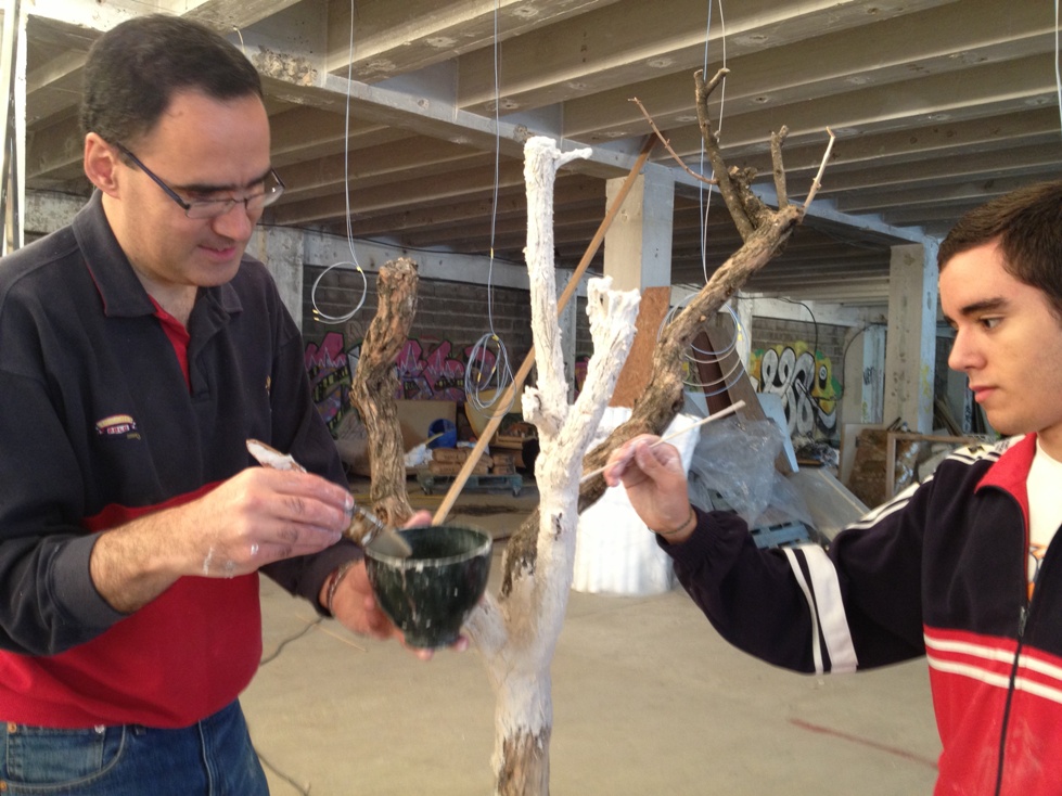 Una rama que llegó el sábado, ayer quedó convertida en una magnífico arbol, un trozo de madera ya forma parte de las paredes del portal, un pedazo de porexpán de un embalaje, es ya pieza fundamental de una montaña. Pero sin duda lo mejor de todo, es el magnífico ambiente que se respira en el taller, a los nuevos se nos recibe con los brazos abiertos y enseguida te empiezas a sentir participe de un gran proyecto, que el día que se vea culminado, estoy seguro que nos llenará de satisfación a todos los que estamos participando en él.