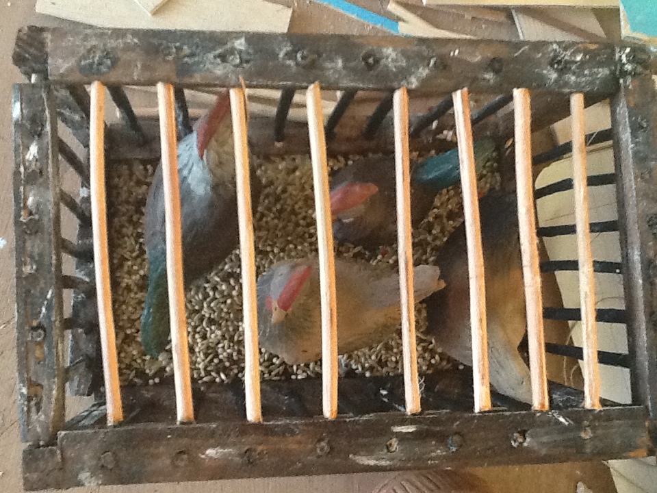 Balcones, jaulas, gallinas.......al final con tanto realismo un día nos encontramos con que han puesto un huevo.
